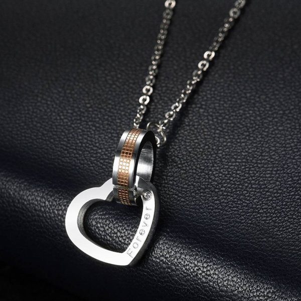 These pendants feature a high-gloss, polished finish that exudes shine and sophistication. The double ring design symbolizes a lock on two hearts, representing that, even when apart, your souls remain forever close.