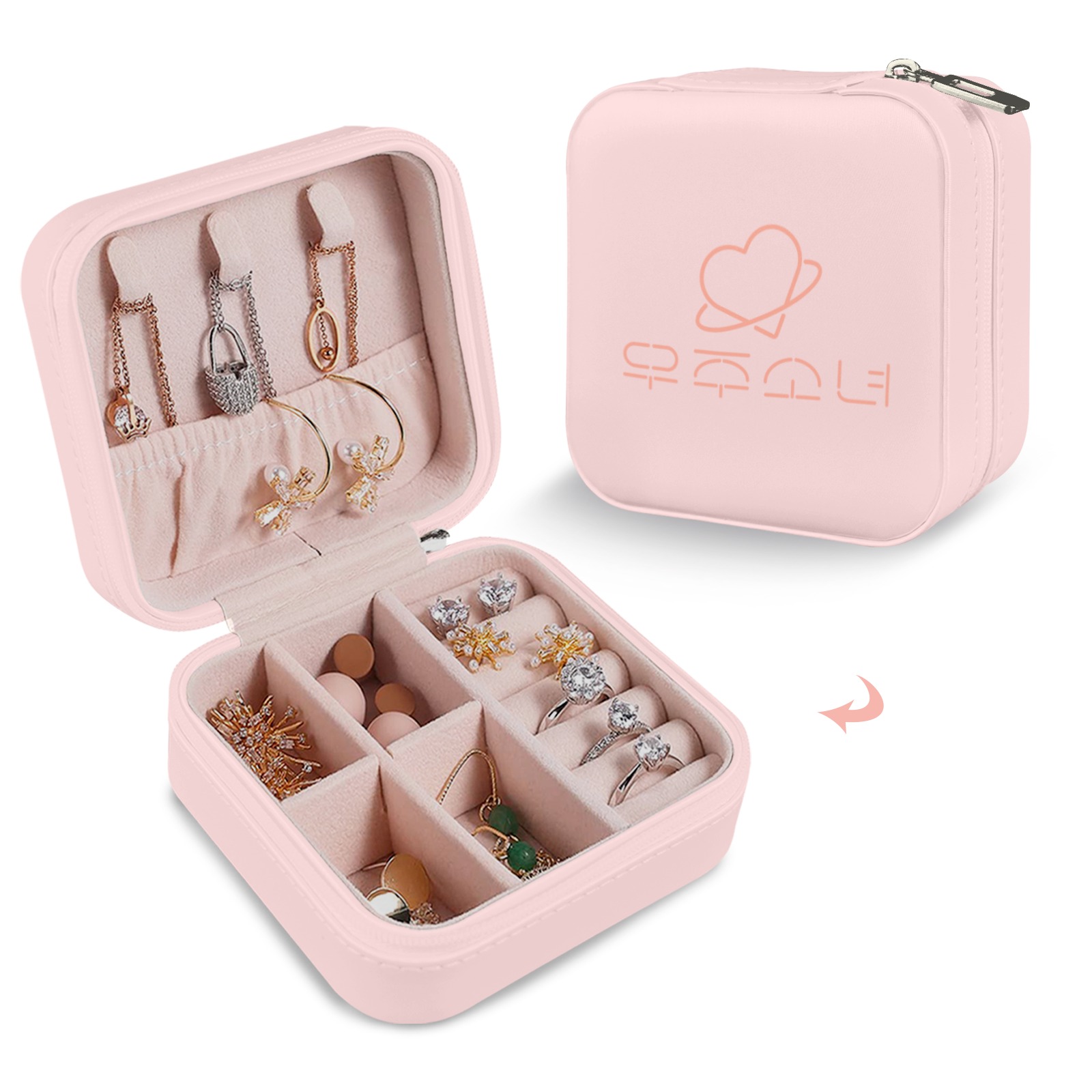 - PU Leather, Travel Jewelry Storage Box, Top Side Printing